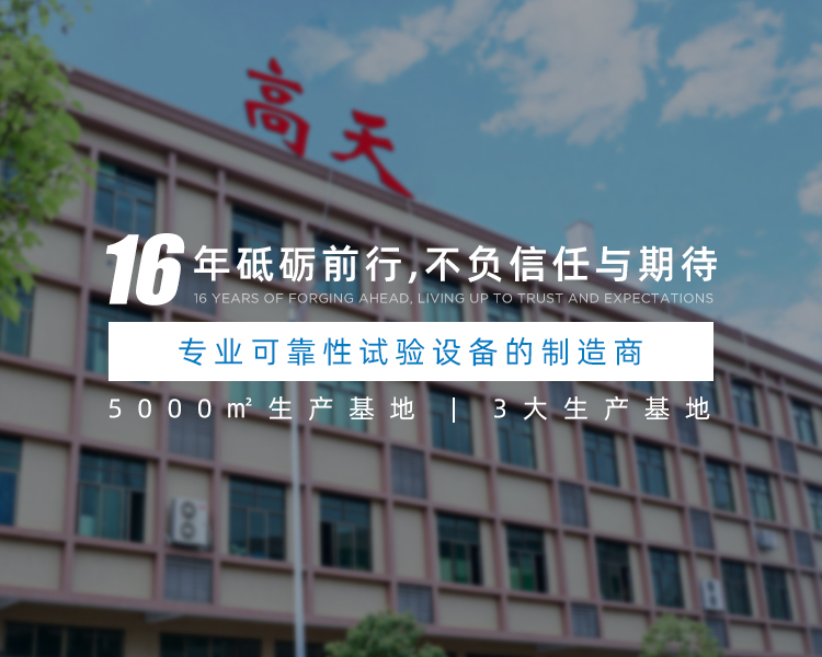 東莞市高天試驗設備有限公司是一家可靠性試驗設備的制造商,我們專注于可靠性試驗已有19余年,在此期間,我們竭盡所能,努力為客戶提供完善的實驗室規(guī)劃方案,匹配質(zhì)優(yōu)價廉的試驗設備。高天擁有完整的研發(fā)團隊,其中有很多人都躋身試驗設備行業(yè)多年,能為顧客提供完善的技術方案,以幫助廣大客戶在確保其產(chǎn)品品質(zhì)的前提下,有效降低經(jīng)營成本,提升經(jīng)營競爭優(yōu)勢。高天生產(chǎn)的設備種類眾多,同時擁有實用新型專利證書,銷售范圍覆蓋全國。公司自成立以來堅決以精美的外觀設計,認真務實的工作精神,良好周到的后續(xù)服務,贏得了客戶良好的口碑。我們將一如既往,堅持以“誠信經(jīng)營”為...